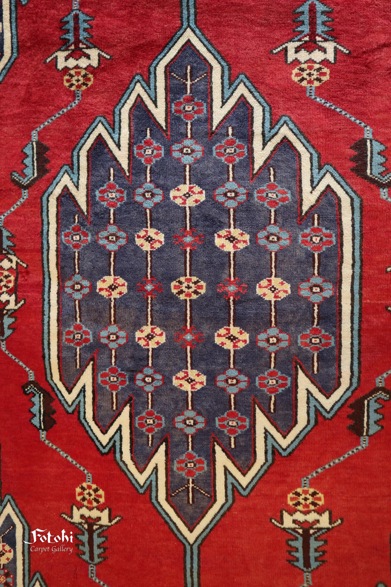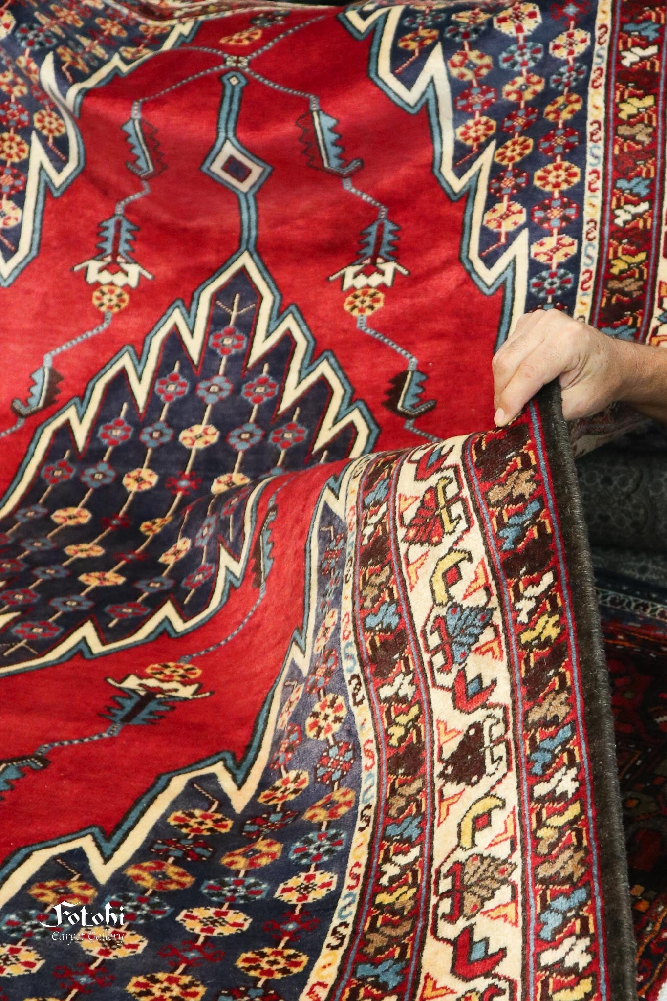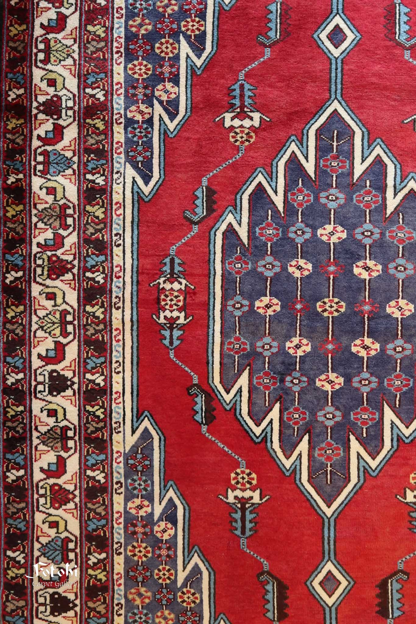 This particular piece stands out as one of the finer Mazlaghan carpets, woven about 50 years ago. Made of wool on a cotton foundation, it displays a natural sheen from both the high-quality wool and occasional sun exposure, enhancing its beauty over time. The colours are derived from vegetable dyes, a hallmark of village and tribal weaving, where artisans often relied on locally produced natural materials rather than chemical threads.